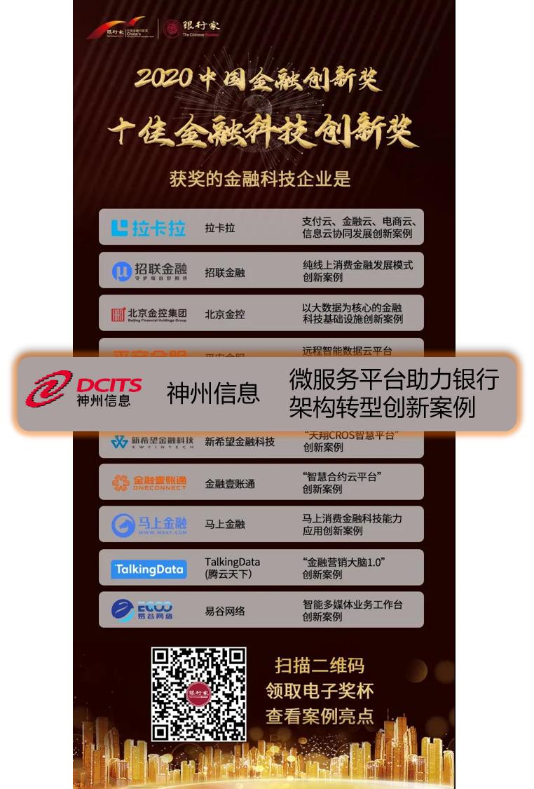 BB贝博艾弗森官网“微服务平台助力银行架构转型创新案例”,荣获“2020中国金融创新奖——十佳金融科技创新奖”。