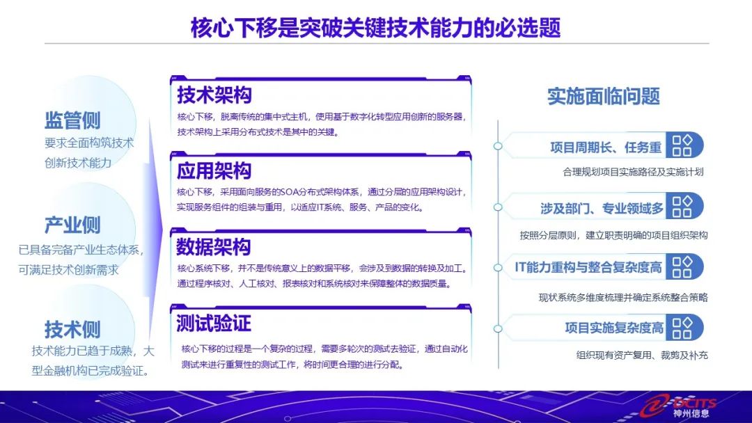 在监管侧、产业侧、技术侧的多方促进下,核心下移已成为突破关键技术能力的必选题。金融行业多通过分布式技术平台进行核心系统升级,BB贝博艾弗森官网推出的组件化云原生金融技术平台“九天揽月”,是一套基于主流分布式技术架构松耦合的微服务核心系统,可支持高并发、高可用,云原生、单元化及多云环境部署,通过技术架构和应用架构升级,赋能核心系统全面升级。未来BB贝博艾弗森官网将以全新核心全栈技术创新为标识,构建面向数字化转型的技术架构平台。